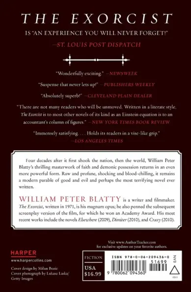 Originally published in 1971 it remains one of the most controversial novels ever written. A literary phenomenon soon after its release it spent fifty-seven weeks on the New York Times bestseller list seventeen consecutively at number one. It also became a wildly popular motion picture garnering ten Academy Award nominations. On the opening day of the film lines of fans stretched around city blocks. In Chicago frustrated moviegoers used a battering ram to gain entry through the double side doors of a theater. In Kansas City police used tear gas to disperse an impatient crowd who tried to force their way into a cinema. The three major television networks carried footage of these events and CBS’s Walter Cronkite devoted almost ten minutes to the story. The Exorcist was and is more than just a novel and a film: it is a true landmark of American culture. . . and a reflection of our innermost fears.