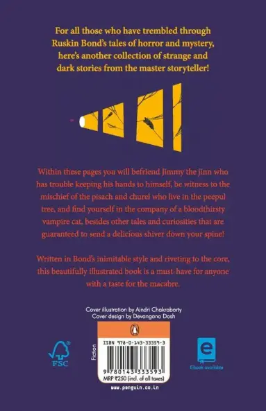 For all those who have trembled through Ruskin Bond’s tales of horror and mystery here’s another collection of strange and dark stories from the master storyteller. Within these pages you will befriend Jimmy the jinn who has trouble keeping his hands to himself be witness to the mischief of the Pisaach and Churel who live in the peepul tree and find yourself in the company of a bloodthirsty vampire cat among other tales and curiosities that are guaranteed to send a delicious shiver down your spine! Written in Bond’s inimitable style and riveting to the core this beautifully illustrated book is a must-have for anyone with a taste for the macabre. About the Author Born in Kasauli in 1934 Ruskin Bond grew up in Jamnagar Dehradun New Delhi and Shimla. His first novel the Room on the Roof written when he was seventeen received the John Llewellyn Rhys Memorial Prize in 1957. Since then he has written over five hundred short stories essays and novellas (some included in the collectionsDust on the Mountains and Classic Ruskin Bond) and more than forty books for children. He received the Sahitya Akademi Award for English writing in India in 1993 the Padma Shri in 1999 and the Delhi government’s Lifetime Achievement Award in 2012. He was awarded the Sahitya Akademi’s Bal Sahitya Puraskar for his ‘total contribution to children’s literature’ in 2013 and was honoured with the Padma Bhushan in 2014. He lives in Landour Mussoorie with his extended family. He has regaled generations of readers for decades.